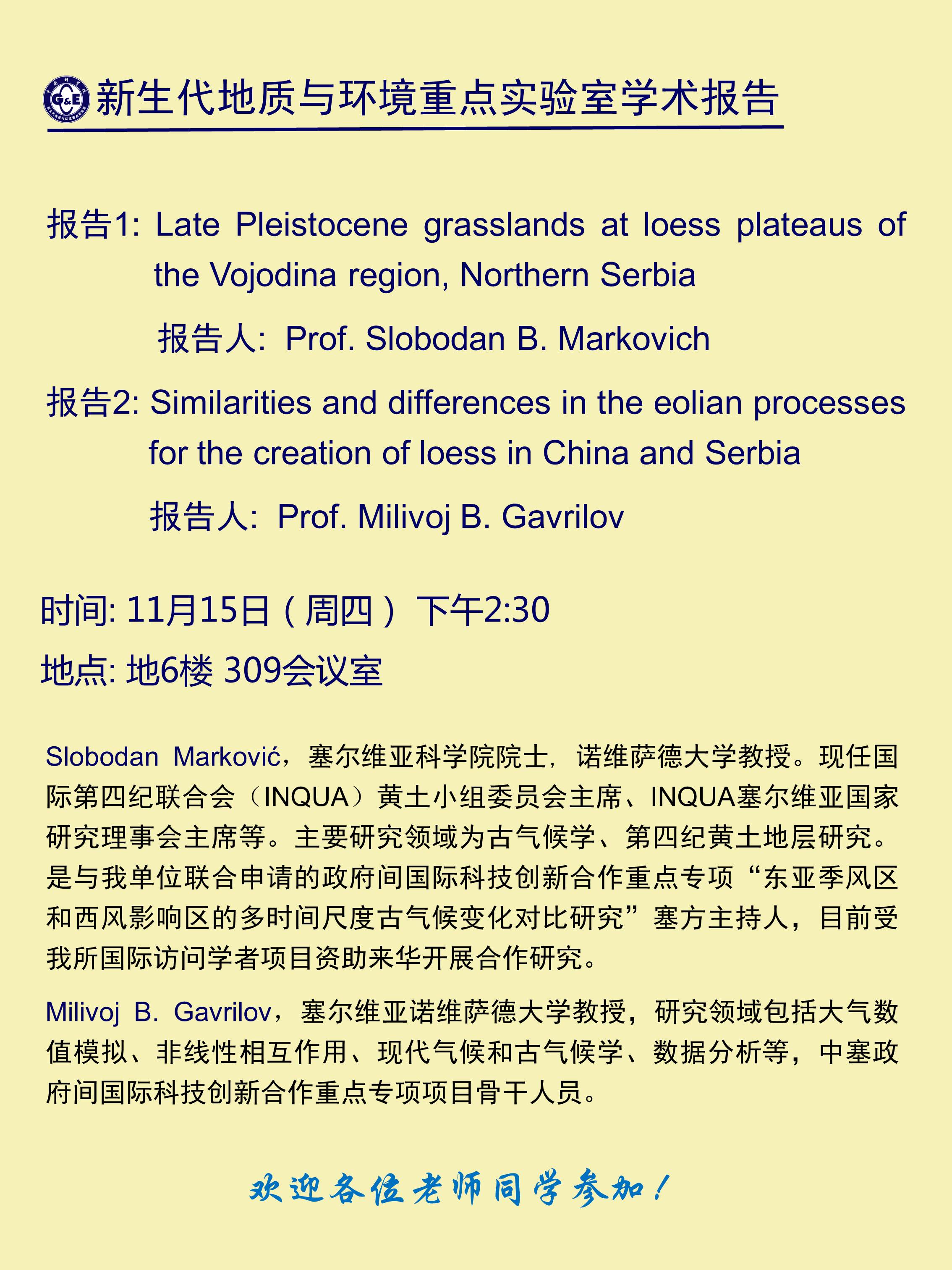塞尔维亚诺维萨德大学Slobodan B. Markovich教授、Milivoj B. Gavrilov教授学术报告